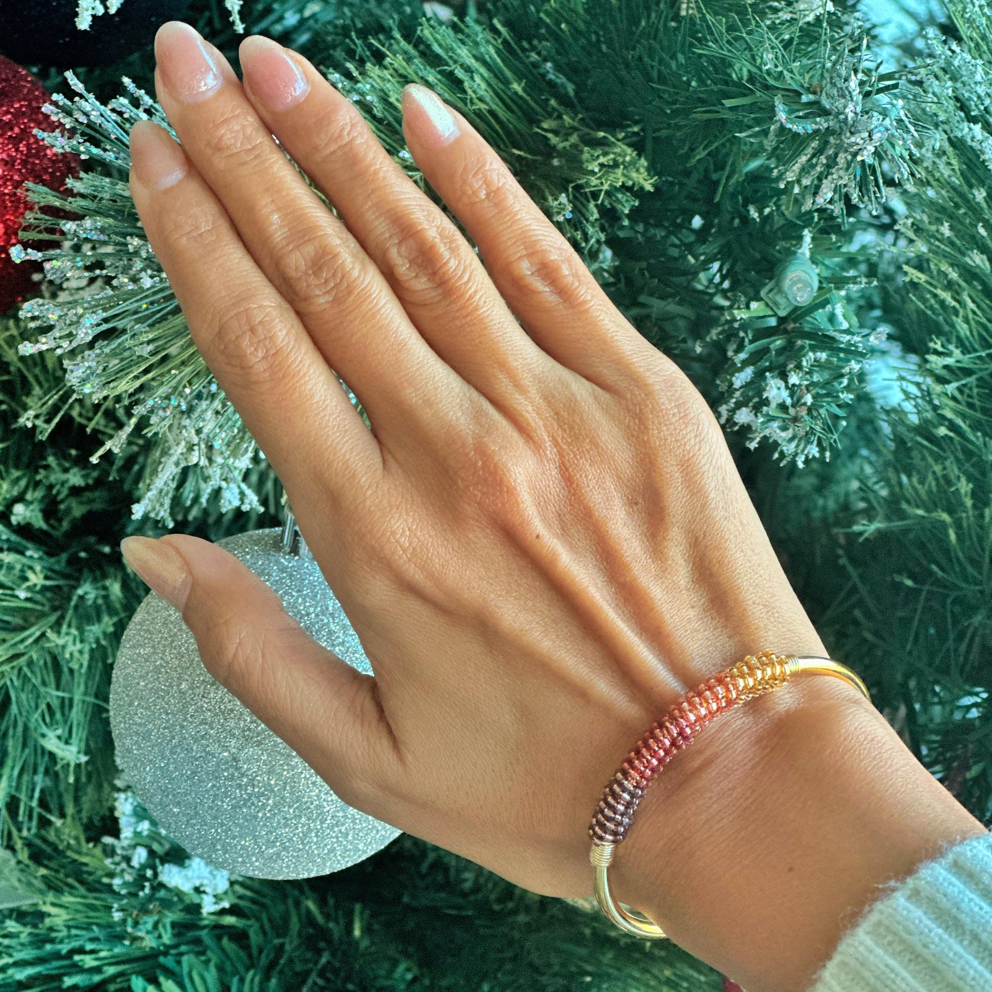 Add a warm artisanal touch to your look with this handmade adjustable bracelet, crafted in gold-plated bronze and woven with earth-tone Miyuki beads. Its flexible, adjustable fit makes it comfortable for any wrist size while keeping a delicate, boho-chic aesthetic.