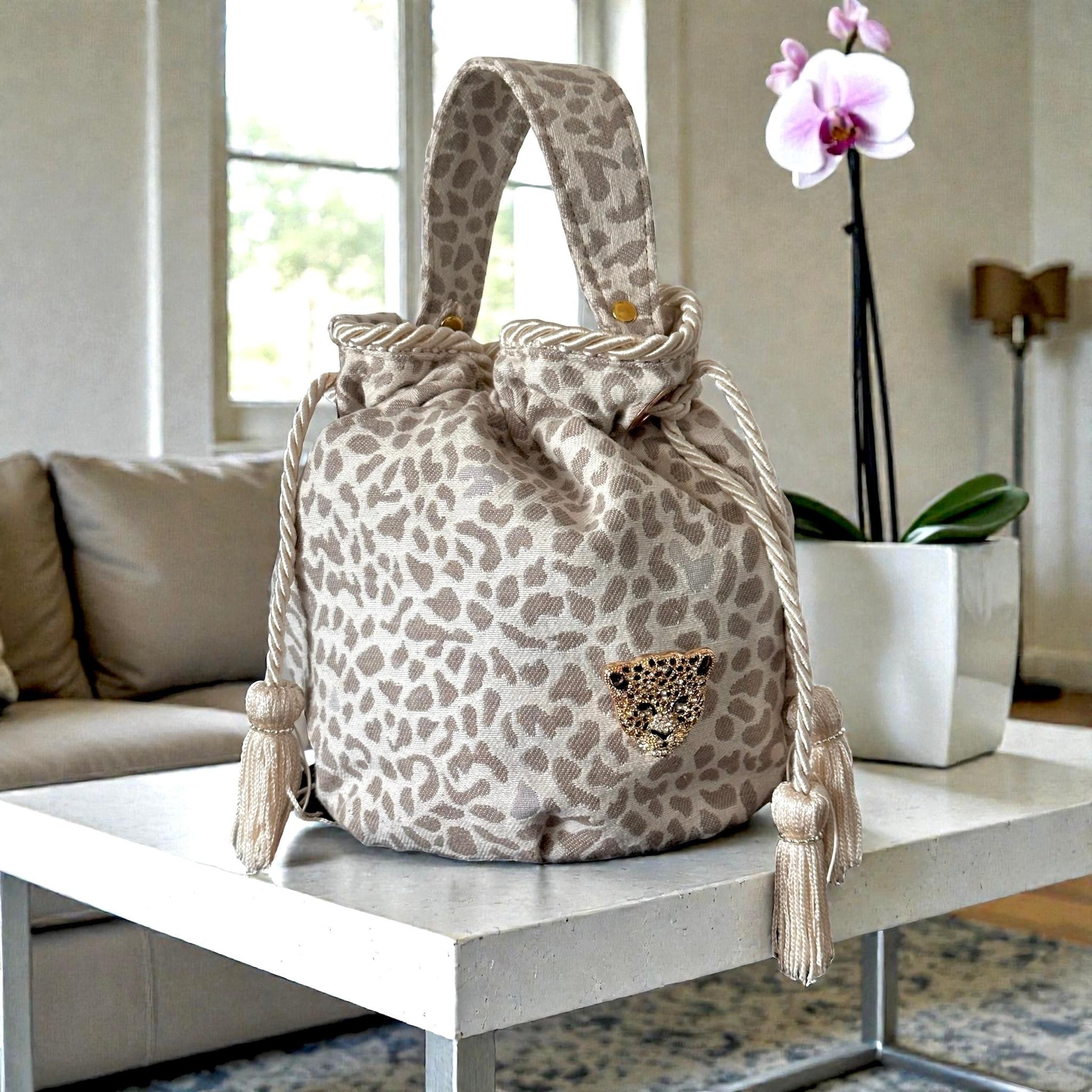 Meet your new statement accessory — an ivory leopard print bag crafted with luxurious Spanish Gobelin fabric, known for its durability, elegance, and intricate woven texture.