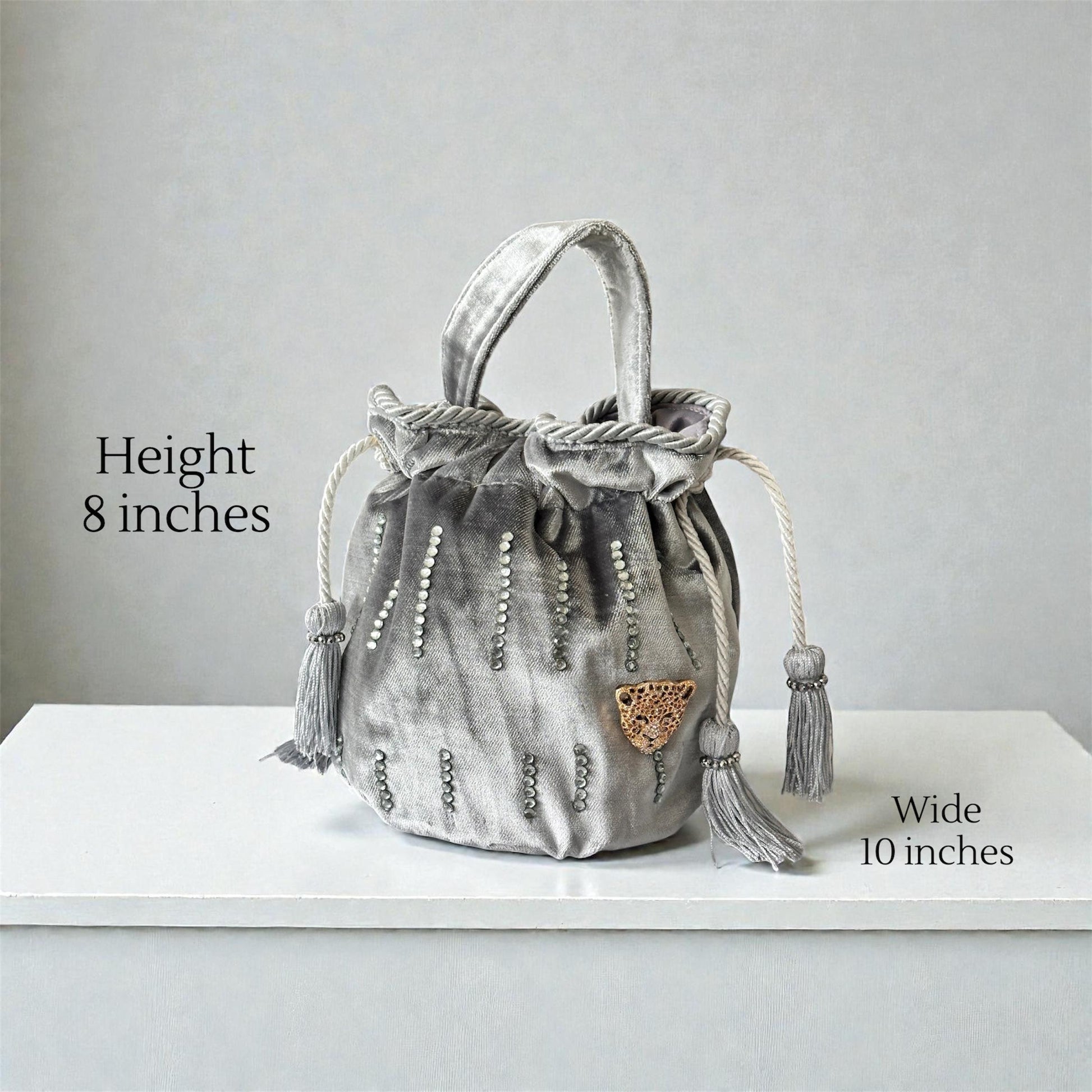 Add a touch of shine to every moment with this stunning handmade silver velvet bucket bag, designed for women who love unique, eye-catching accessories.