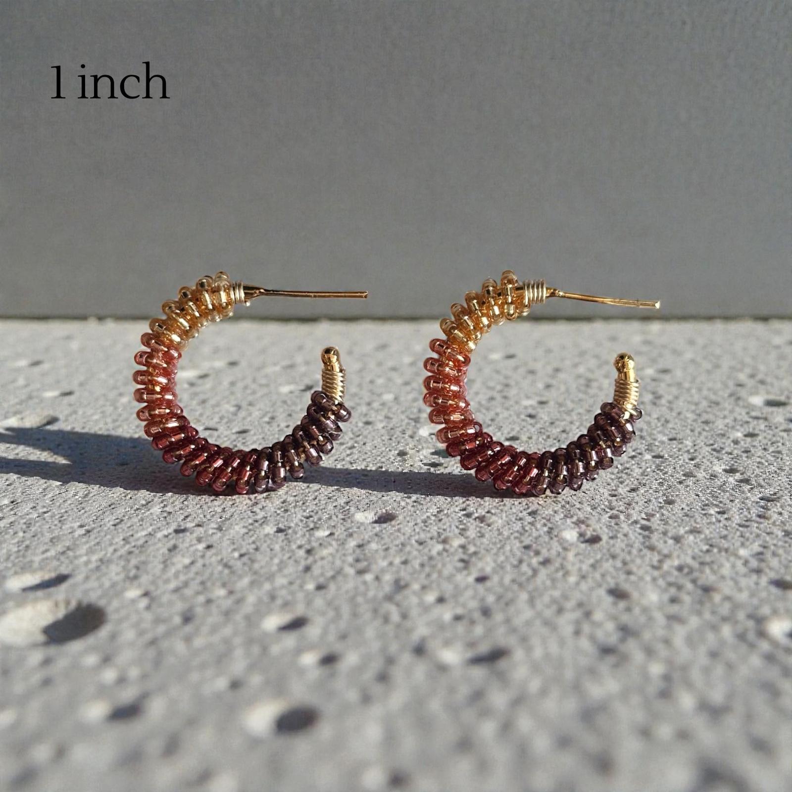 Elevate your everyday style with these handmade gold-plated hoop earrings, beautifully woven with Miyuki beads in warm earth tones and gold accents.